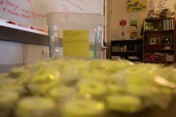 Mrs. Graziano’s English 10 class can be seen many days actively trying to complete assignments and tests. The more mints, the more motivation.